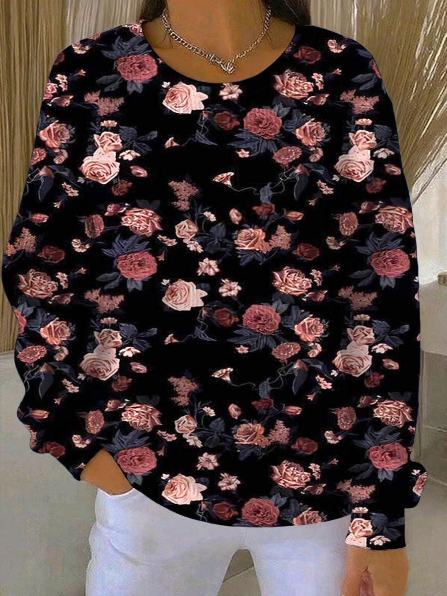 Дамски романтичен розов цветен черен суитчър