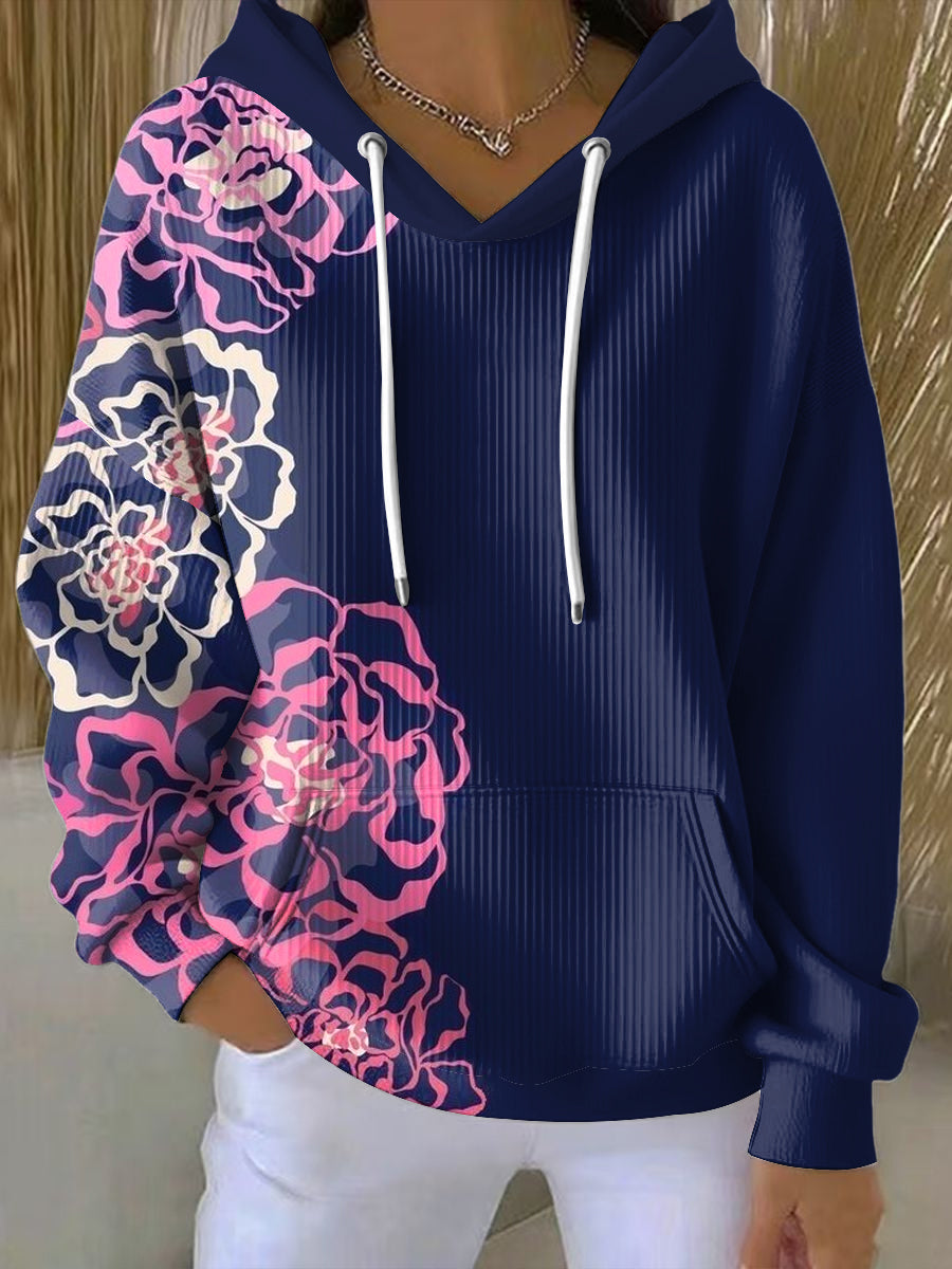 Жените благодарност цветни тиква изкуство v-врата пуловер