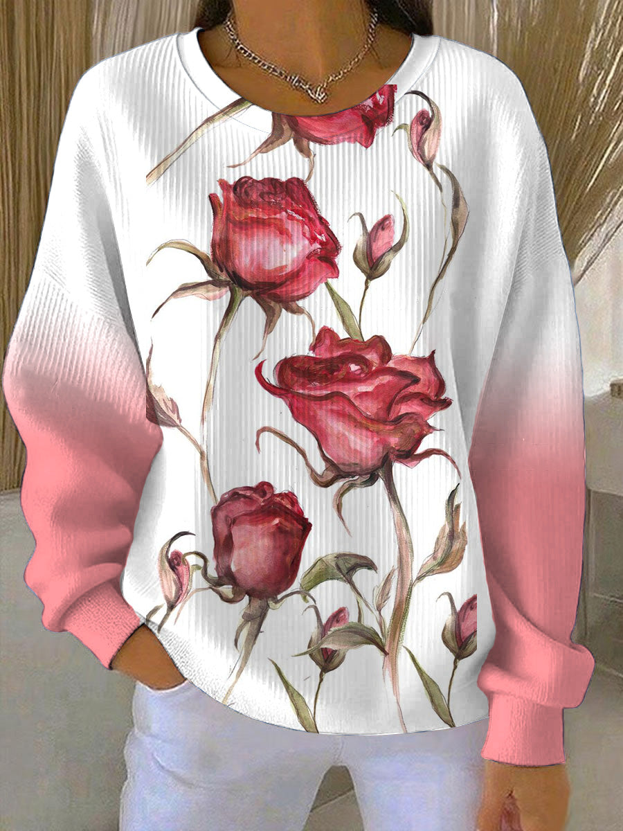 Жените благодарност цветни тиква изкуство v-врата пуловер