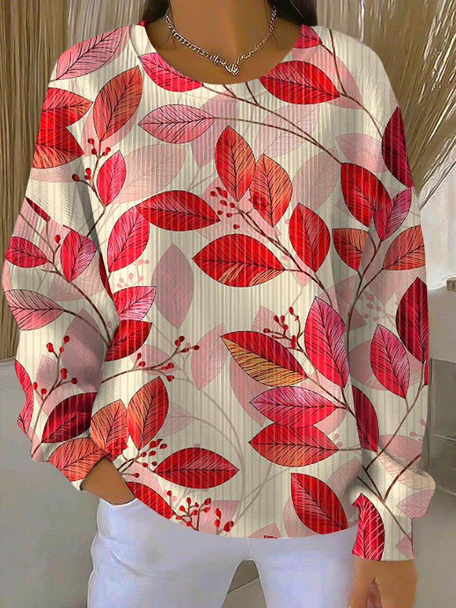 Женската благодарност кленов лист текстура случайни екипаж врата пуловер