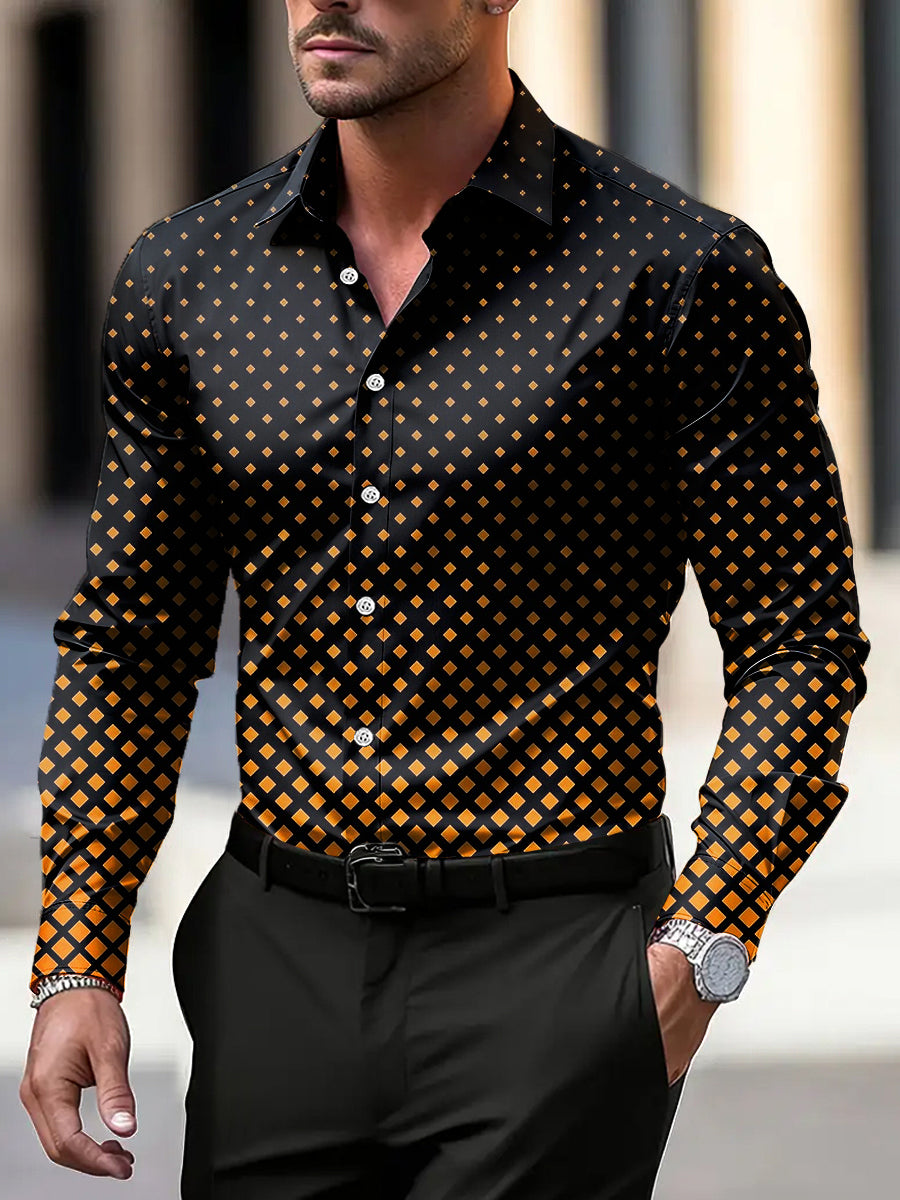 Мъжки реколта градиент геометричен бизнес с дълги ръкави риза