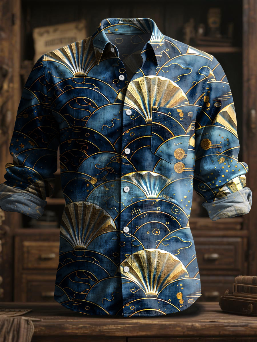 Ретро абстрактни геометрични вентилатор форма изкуство с дълги ръкави риза