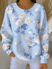 Női szép világoskék pulóver fehér rózsa nyomtatással